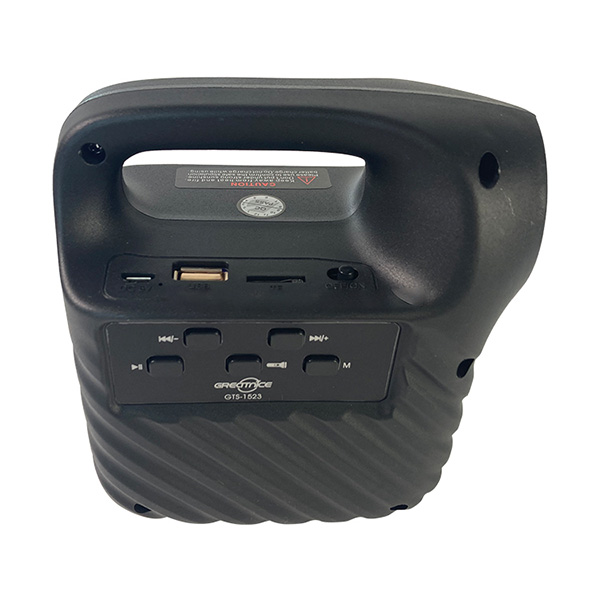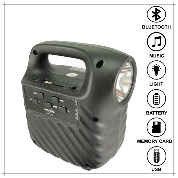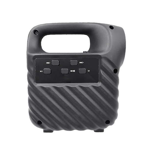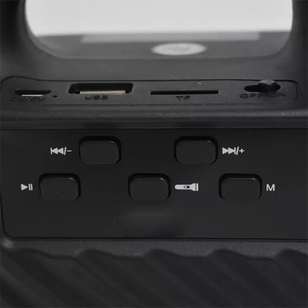 3-inch speaker with LED light. It has a fabric strap for easy transport. 3.5mm aux inputs, micro SD, microphone, FM radio and flashlight included. Up to,use as karaoke, display screen with buttons, with the option to link two or more speakers.