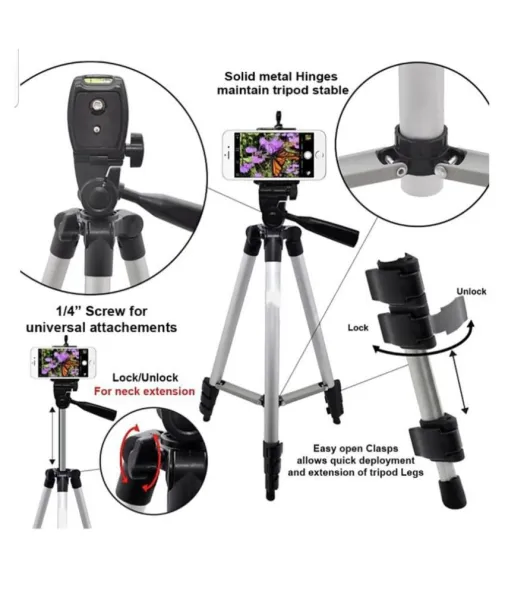 Lightweight, steady and portable.(With one black bag)Built-in spirit level, three-way head and height adjustable center column.. Quick release plate can fix to your camera easily. Adjustment knob and rotating handle make the head realize three-way adjustment.. Center column fixed knob can fix center column to a suitable height..4-section column leg with quick release locks, giving a more flexible leg handling, satisfying your wanted height when shooting. Suitable for most digital camera and small camcorders.