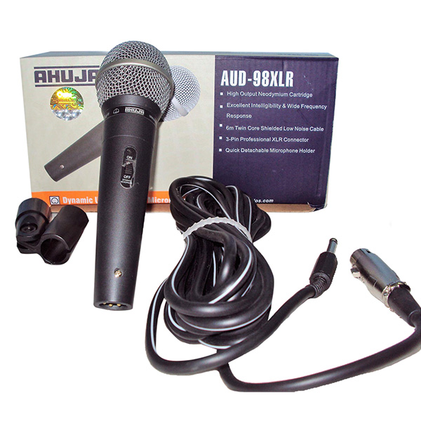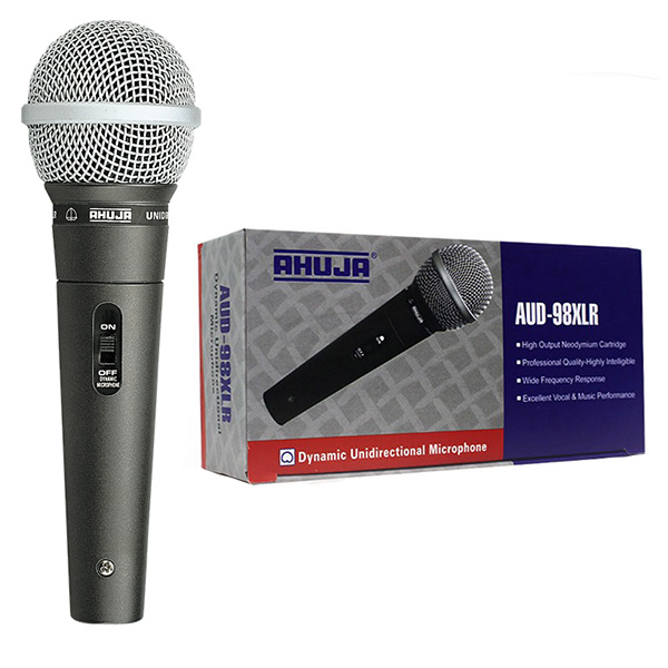 Buy AHUJA AUD 98XLR Dynamic Corded Mic High output neodymium cartridge. Excellent intelligibility & wide frequency response. Attractive appearance. Supplied with the quick detachable holder with 3-pin professional XLR connector. Twin core shielded low noise cable. Only Quality Products.