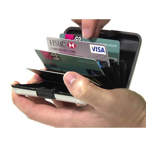 Protect your identity from thieves with a Secure Aluminium Wallet/Credit Card Holder which prevents RFID scanning of your cards. The holder opens to a 6 pocket accordion style file which will hold credit cards, debit cards, ID cards and more. The Aluminium Wallet is made of lightweight aluminium, and with its ultra-slim design, fits easily into a purse or your pocket.