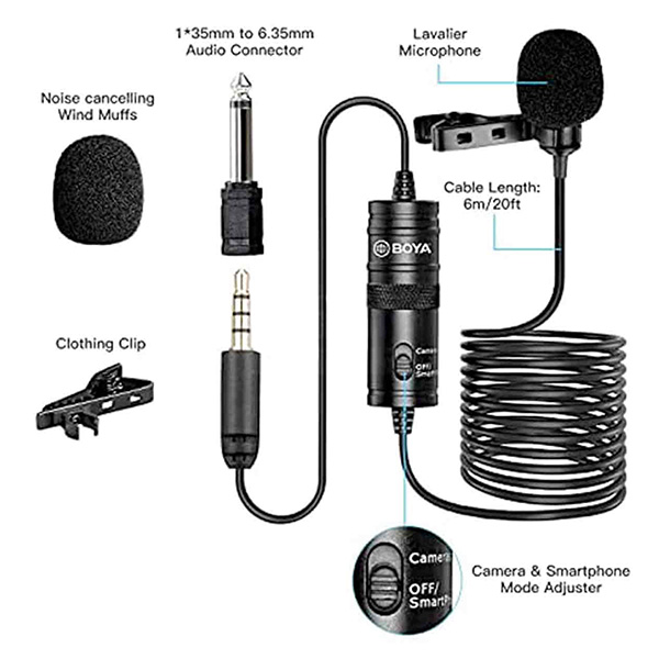 BOYA BY-M1 Lavalier Clip-on Omnidirectional Condenser Microphone is designed for video use and provides clear and accurate voice reproduction. The newscaster-style design provides an effective Omni-directional pickup pattern. most importantly this is the best performance + cost value available for your complete video needs.