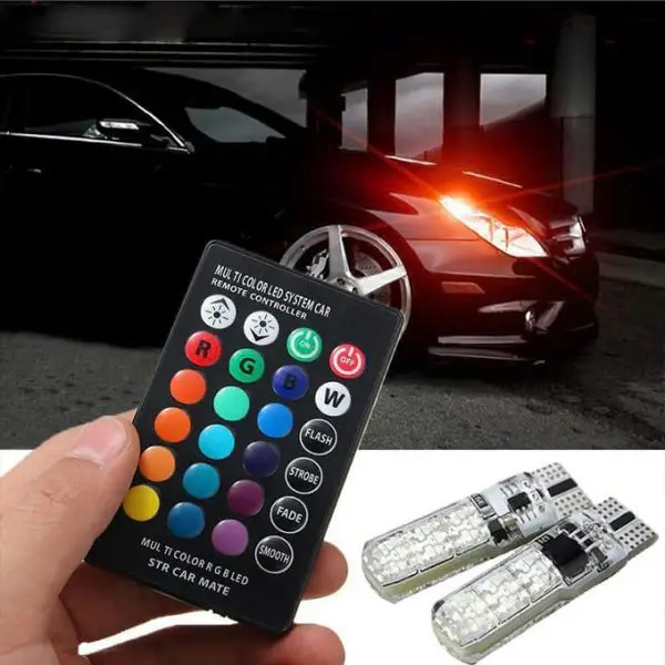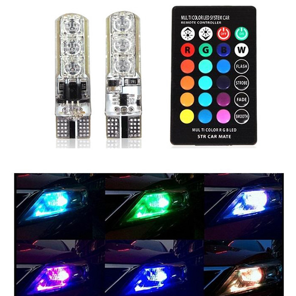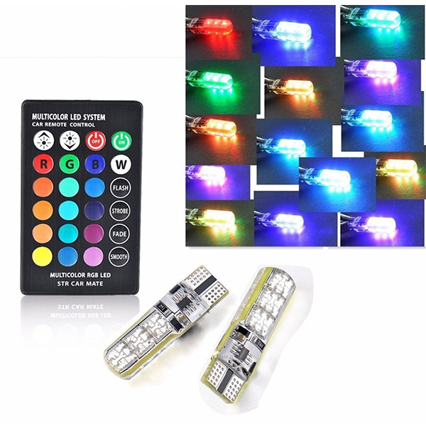 New RGB with remote control T10-12smd COB silicone car width lamp strobe light atmosphere lamp pair of equipment