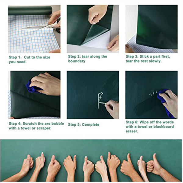 can be directly posted on a flat wall, wood, glass and other surfaces, allowing you to instantly have a beautiful blackboard, is the first choice schools, homes, offices, restaurants, coffee shops and the like. Blackboard film is waterproof, paste convenient , durable, Ordinary chalk to write.