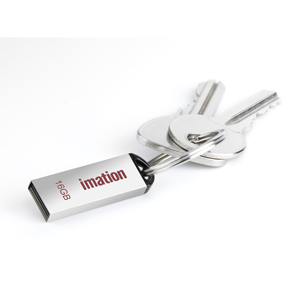 Imation Alfa Metal offers intelligent storage in a sleek and slim design. The drive is constructed with a durable metal housing and with and opening to easily attach the drive to a landyard or key chain.