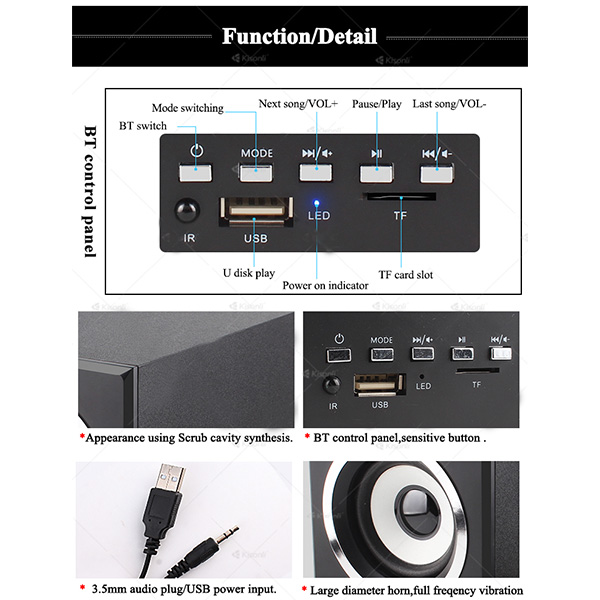 Function: TF Card/USB/Bluetooth/AUX/ FM/Remote