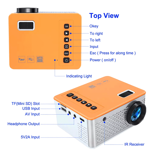 - Mini video projector is small and portable, and can be carried in a pocket or bag. Even children can hold it easily.
