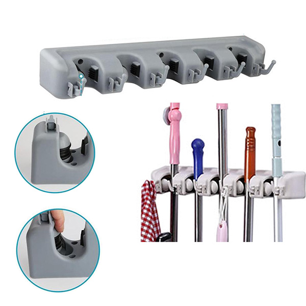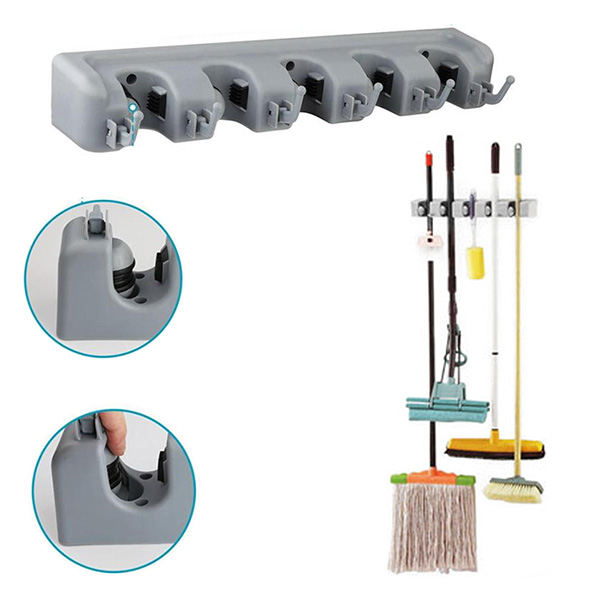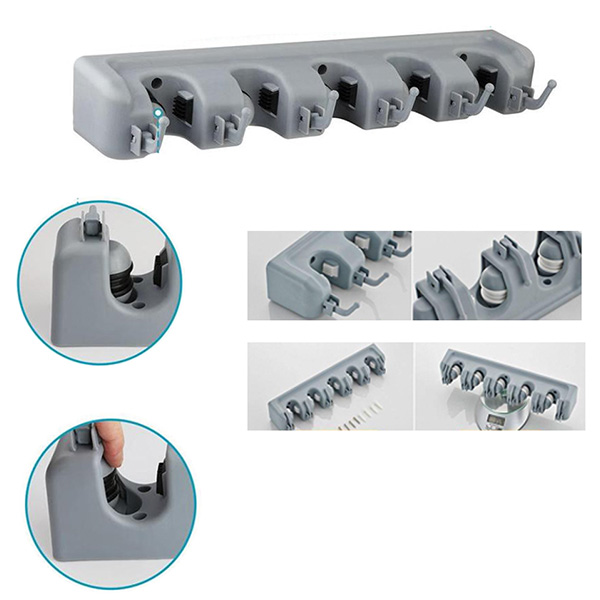 None Slide Holder: Thanks to the spring loaded, double rubber gripped slots, whether wet mops, dirty rakes or baseball bats. Moreover, this broom holder is of highest quality to ensure that it can resist rain corrosion. In addition to this, the holder is foldable and has extremely sturdy hooks with a unique hook edge design. This makes it easy to hang brooms and mops along with its holding capacity of bearing 3kg per hook at least.