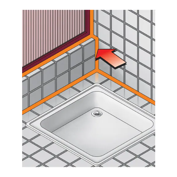 Connection and expansion joints in tiled, bathroom and sanitary areas.