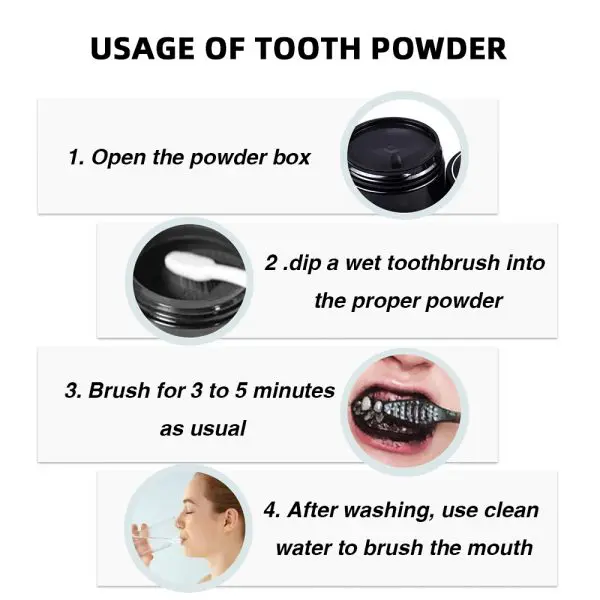1. Our Teeth Whitening Charcoal Powder is 100% natural, black and messy. After you used, the smile will never be wiped off your face.