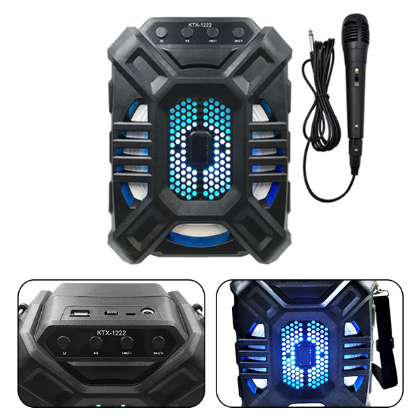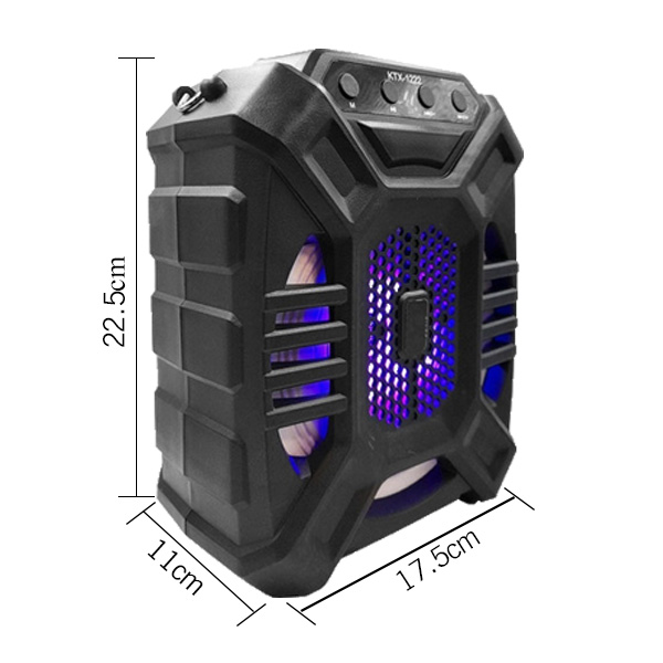 Wireless Connectivity Support USB/TF card AUX Function Rechargeble battery Karaoke Function Wireless Stereo twin Speaker Function-When you have two Devices, -need to long-press "M" to Build-The connection with both FM radio, search and record -The FM frequency Automatically Specification : - Wireless transmission Rang : up tp 10 meter. -Speaker Drive Size : 6.5inch, -Output power : 10W. -Frequency reaponse : 100Hz - 20KHz, -Signal to noise ratio : >=85dB. -FM Scan Rang : 87.5-108.0MHz -USB Charging : DC5V. -Battery Capacity : 1200mAh -Max Memory Support ( USB/SD):32 GB -Play Time : Up to 1hours At 75% Volume -Charging time : 3 Hours, -Product Size: 18.5*11.6*22.9CM Package Content : USB Charging Cable Microphone